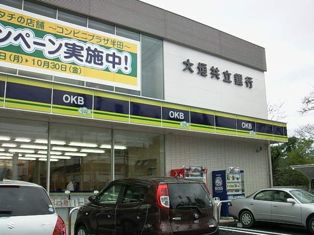 半田高校そばの半田信用金庫のお隣です。なかなか鼻息荒いですね。現に私の知人は、半田信用金庫で定期を解約し、そのままお隣の大垣共立銀行へ・・・、でした。