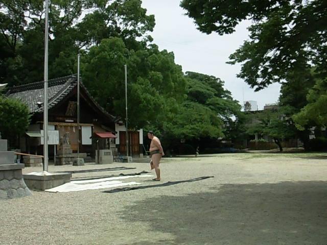 途中、遠くに力士のぼり発見!!!見ると、玉乃島。ということは片男波部屋の宿舎ではありませんか。え~?なんていう神社なの?日本武尊の像がありました。しかし、私の目は境内に干してあるまわししか見えていない・・・。熱田神社、お宮参りの若いご夫婦が2組お参りしていらっしゃいました。大府市の方たちはここでお宮参りするんでしょうか。片男波部屋といえば、名古屋出身の玉飛鳥がいます。今場所、西の十両筆頭ですね。幕内目前、がんばれ、玉飛鳥。いよいよ明日から名古屋場所始まります。