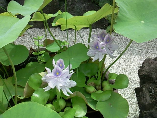 ちょっと道草してしまいましたが、6番札所の常福寺へ。が、その前に半月町のエイデンの向かいにあるお蕎麦屋さん「雄岳」でざるそばを。通常の九割そばに100円足すと十割そばにランクアップするのでその十割そばをいただきました。おいしい。食感、かなりしこしこです。最後、まるでお粥のようなとろんとした蕎麦湯を入れて、付け汁を飲み干しました。これもまたおいしい。腹ごしらえして常福寺をめざします。枯山水のお庭はいつ見てもきれいです。ホテイアオイも咲いていました。結局、今日は最後まで他のお遍路さんたちとは会うこともなく、ふたりだけの貸切状態のお遍路でした。