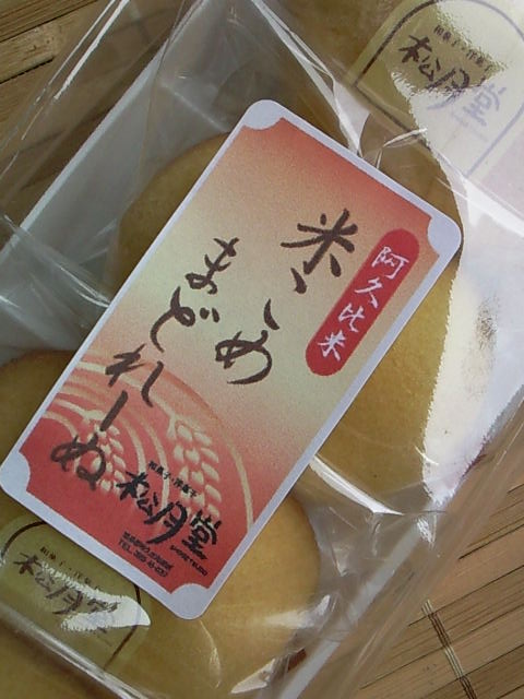 しかも阿久比米の。つまり小麦粉ではなく米粉で作ったマドレーヌです。阿久比営農研究会と商工会と松月堂という和菓子&洋菓子屋さんのコラボです。どうも町おこしの一環で作られたようです。