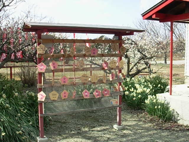 昼食後、今度は近所の北原天満宮へ、これまた最後のお願いに。真赤な合格橋を渡ってまいりました。ま、私が渡っても仕方ないんですけど。満開の梅。その横で合格祈願の絵馬が北風にカチャカチャと吹かれていました。