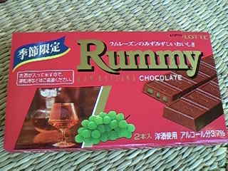子供のころ、初めてロッテのこのラミーチョコレートを食べたときの感動は今もって忘れられません。おおおお、大人の味だぁ。ラム酒につけたレーズンが入っていて、アルコール分3.7%、今まで食べたことのないチョコでした。たくさん食べたいのだけれど、お子ちゃまの私はボゥ~と身体が熱くなってきて少ししか食べられなくてとっても悲しかった・・・。