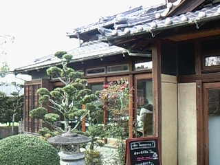 こんな日本昔ばなしの世界の入り口に喫茶店がオープンしました。「絲音(しおん)」。いわゆる自宅カフェ。縁側と床の間のある座敷にテーブルが5つほどのこぢんまりとしたカフェ、なんだか田舎のおばあちゃん家にいるみたいにくつろいでしまいました。庭越しにお寺さんが見えます。最高のロケーションだわ、私的には。それに山下達郎やユーミン(松任谷由美じゃなく荒井由美の頃の)の懐かしい歌が流れていて、なんだか青春気分。