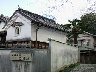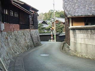 身も心もほどよく温まったのでそのまま岡田へ。汚染米リストにのってしまった竹新のあられの近くにある72番札所の慈雲寺でお参りして駐車場に戻ってくると、南側の小高い丘のてっぺんに神明社の看板を見つけました。そのまますたすたと岡田の町を歩きました。ここ岡田はかつて知多木綿の産地として栄え、坂道のあちこちにお蔵や板塀の家が今も残っています。