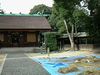 どんどん坂道を登っていくと、てっぺんに岡田神明社がありました。境内にはしめ縄が並べられていて、お正月の準備真っ盛りでした。