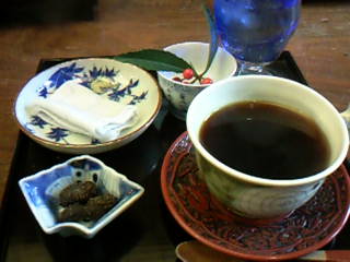 旧道沿いのカフェでひと休み。築100年の京都風町屋造りのカフェ「大野町きょう屋」。常滑市議会議員をやっていらっしゃる店長さんのお話を聞きながら、コーヒーの中に甘く煮た落花生の皮を入れるという不思議な飲み方のコーヒーをいただきました。中の豆はお正月の黒豆のようでした。